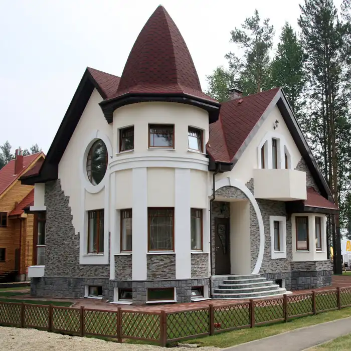 Гибкая черепица может применяться не только на малоэтажных жилых зданиях, но и при строительстве административных, жилых многоэтажных и других типов зданий.
